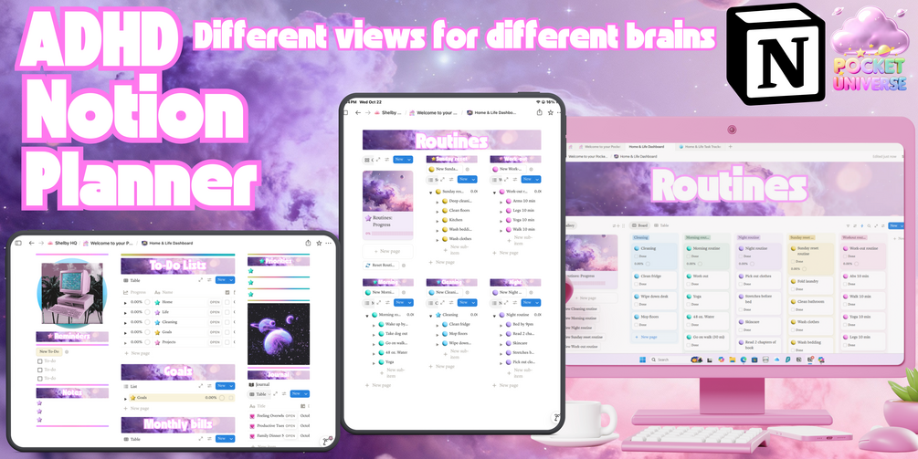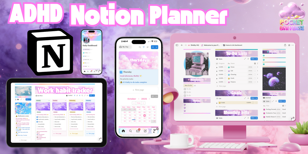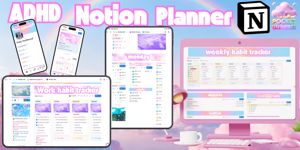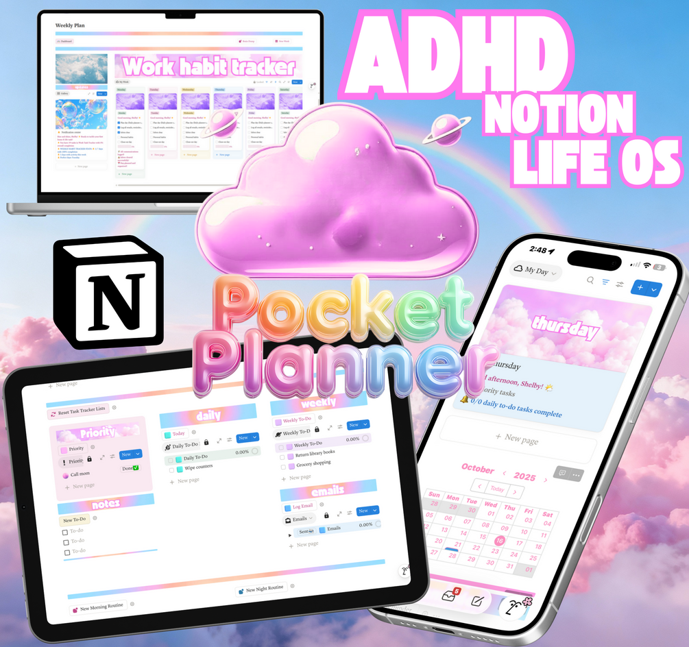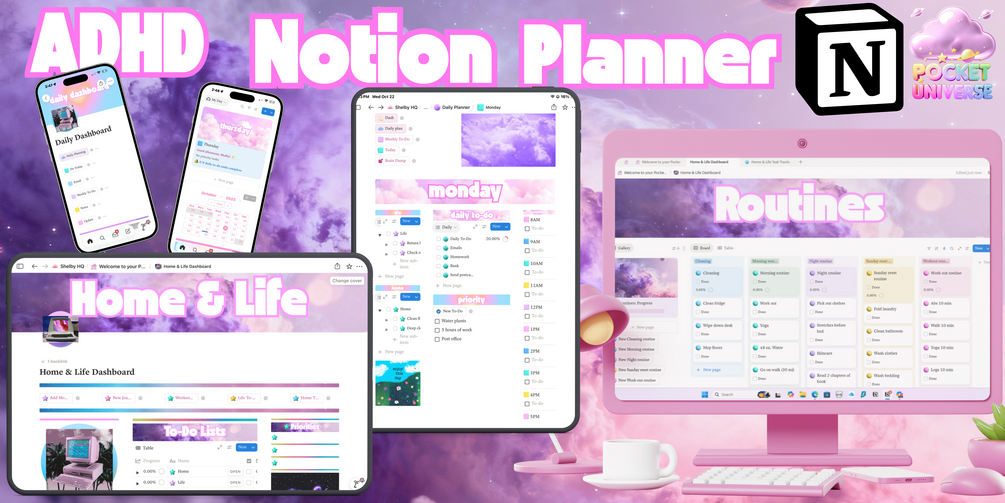 Pocket Planner: Creative Work & Life Balance for ADHD Notion Template