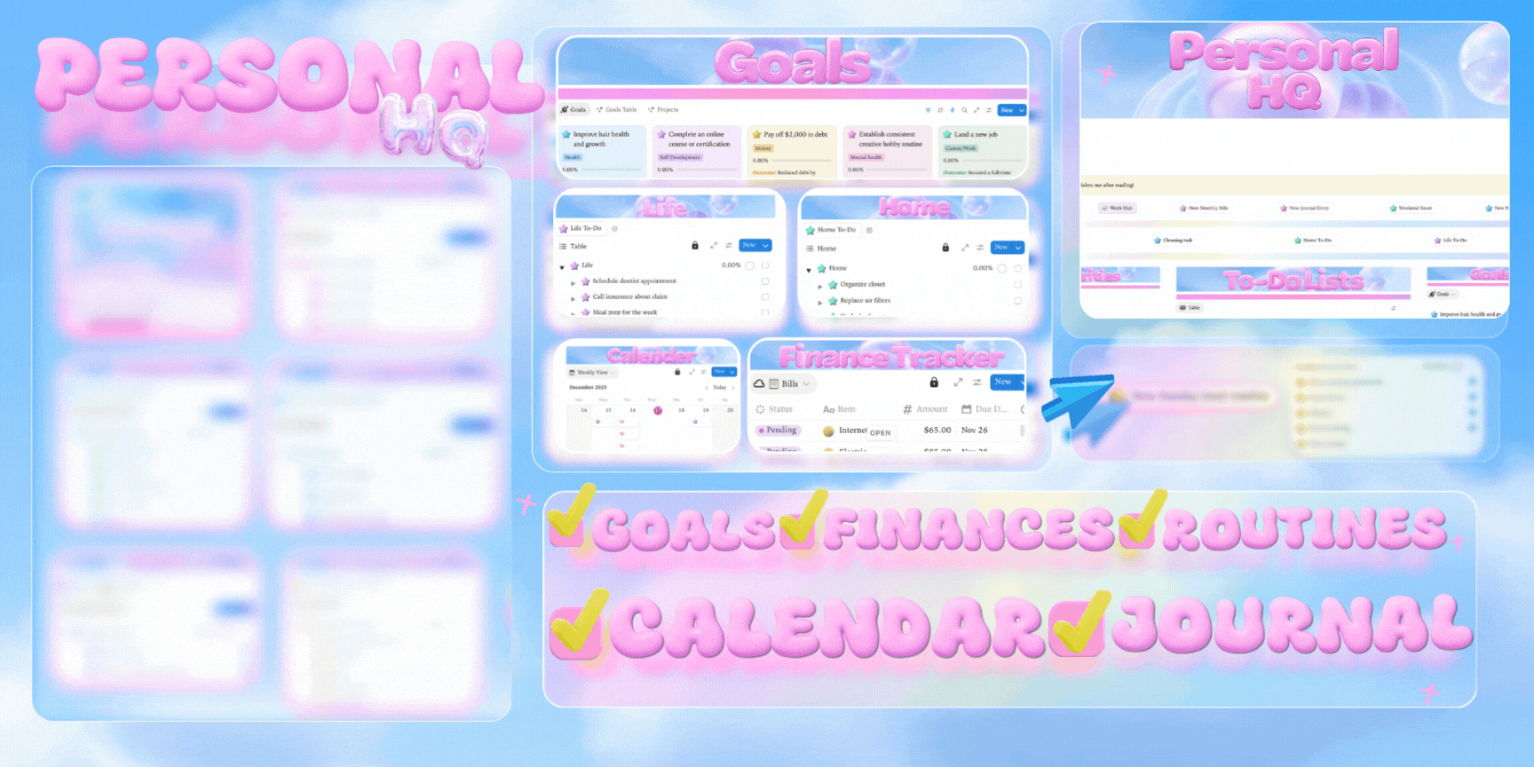 - Bills database with due dates that auto-sync to Calendar